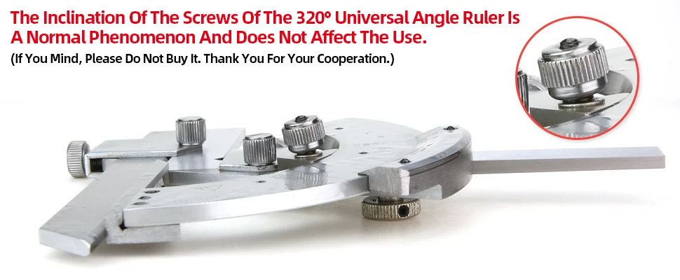 *The Inclination Of The Screws Of The 320° Universal Angle Ruler Is A Normal Phenomenon And Does Not Affect The Use. (If You Mind, Please Do Not Buy It. Thank You For Your Cooperation.)